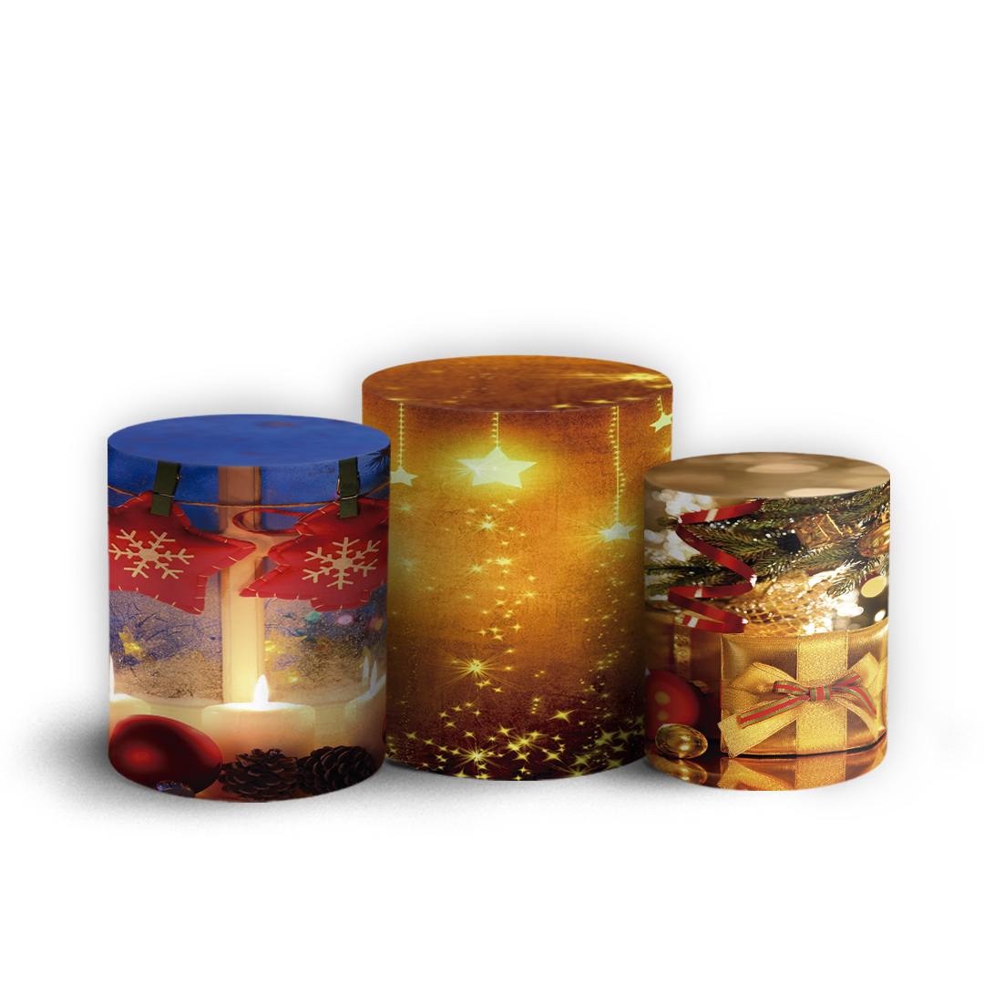 • Cilindro Pequeno (P): 45cm de altura x 38cm de diâmetro (119cm de circunferência)