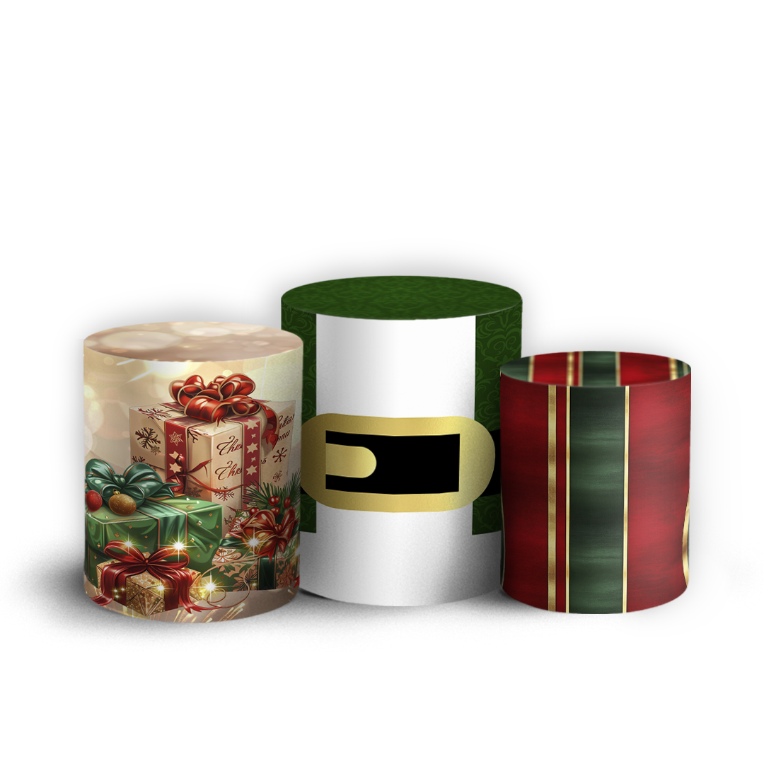 Cilindro Grande (G): 80cm de altura x 50cm de diâmetro (157cm de circunferência)