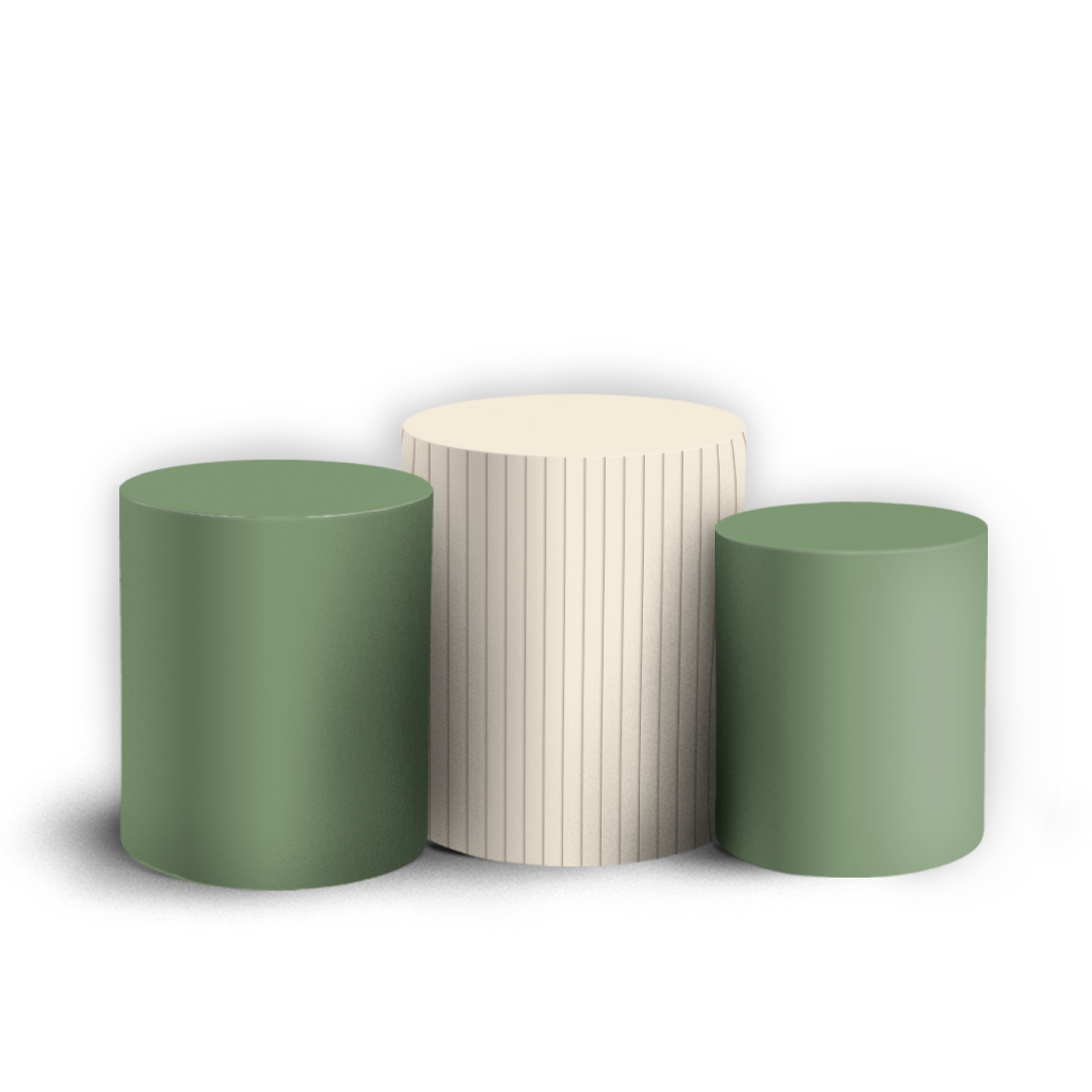• Cilindro Grande (G): 80cm de altura x 50cm de diâmetro (157cm de circunferência)