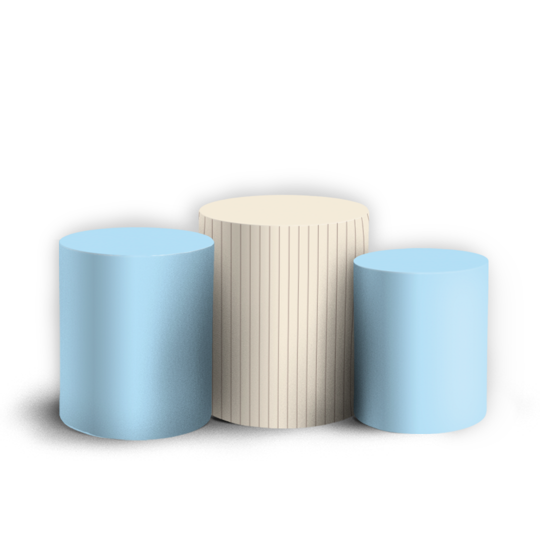 • Cilindro Pequeno (P): 45cm de altura x 38cm de diâmetro (119cm de circunferência)