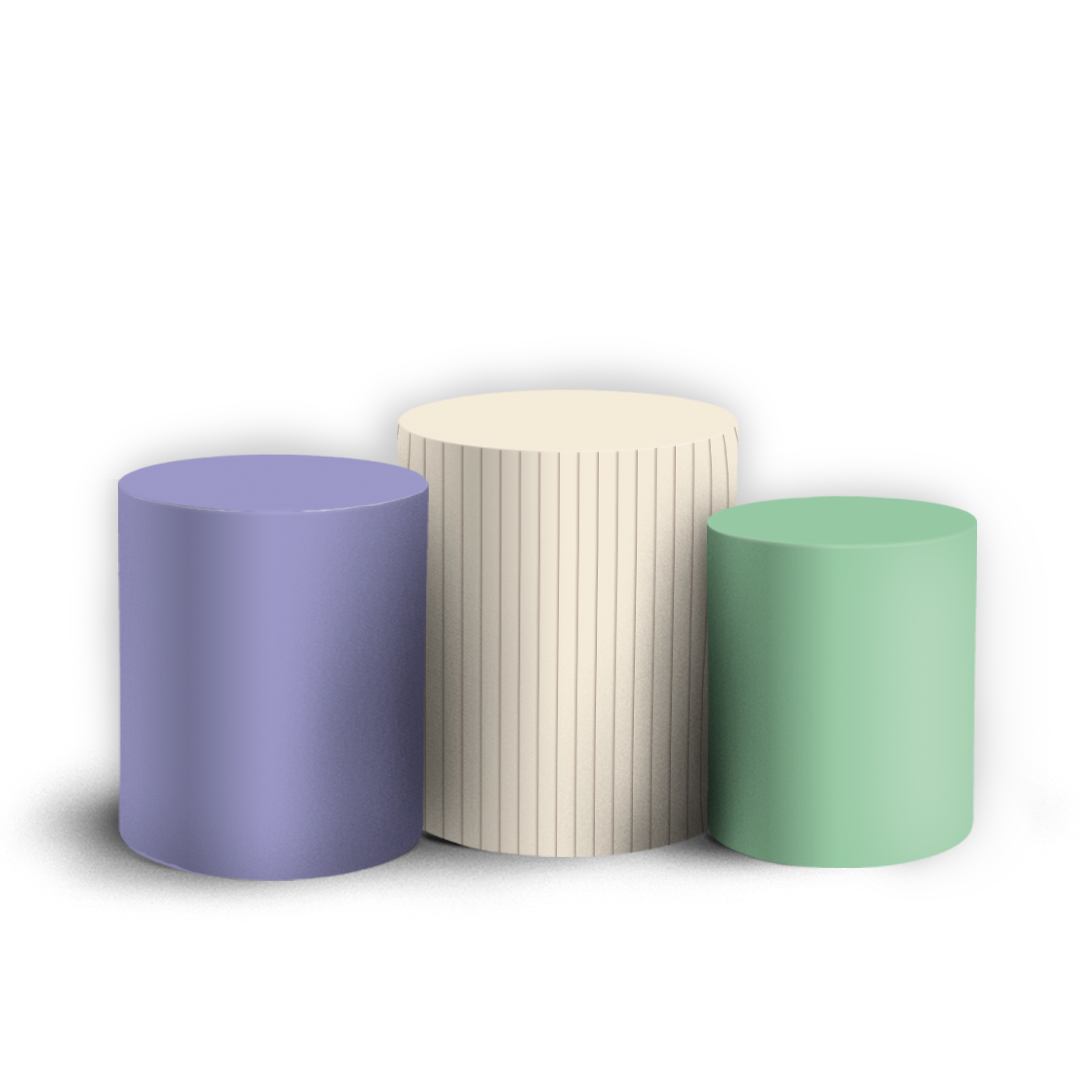 • Cilindro Pequeno (P): 45cm de altura x 38cm de diâmetro (119cm de circunferência)