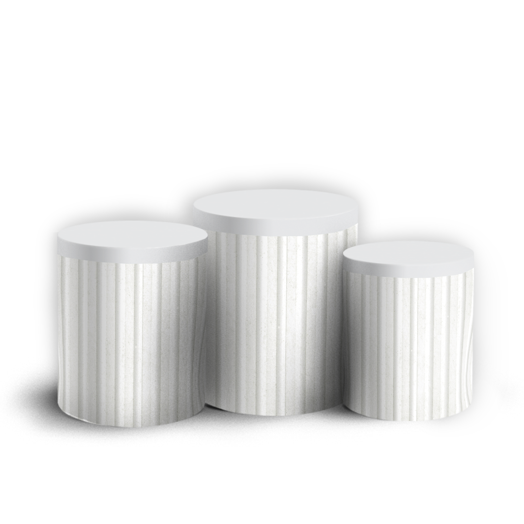 • Cilindro Grande (G): 80cm de altura x 50cm de diâmetro (157cm de circunferência)