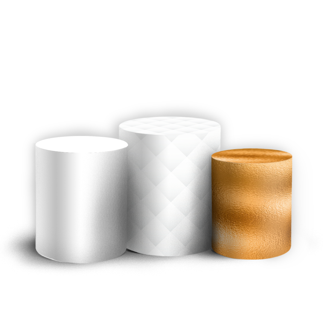 • Cilindro Pequeno (P): 45cm de altura x 38cm de diâmetro (119cm de circunferência)