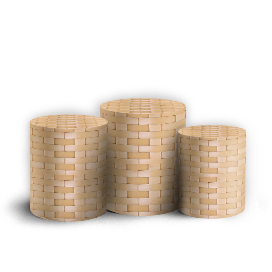 • Cilindro Pequeno (P): 45cm de altura x 38cm de diâmetro (119cm de circunferência)