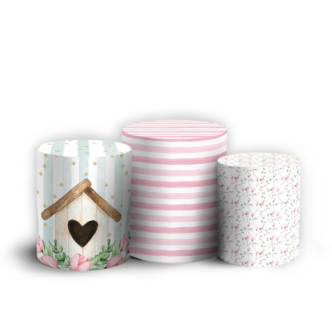 Trio Cilindro - Passaros - Sublimado 3D + Elástico