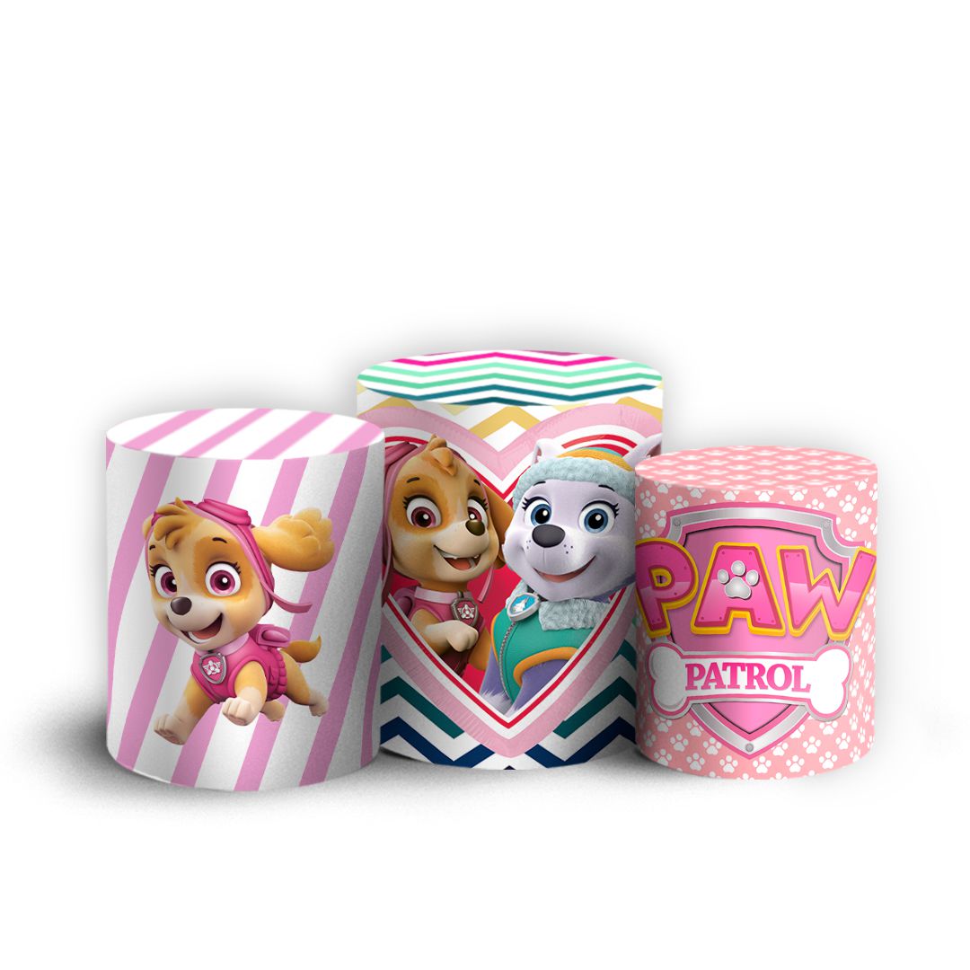Trio Cilindro - Patrulha Canina Rosa - Sublimado 3D + Elástico