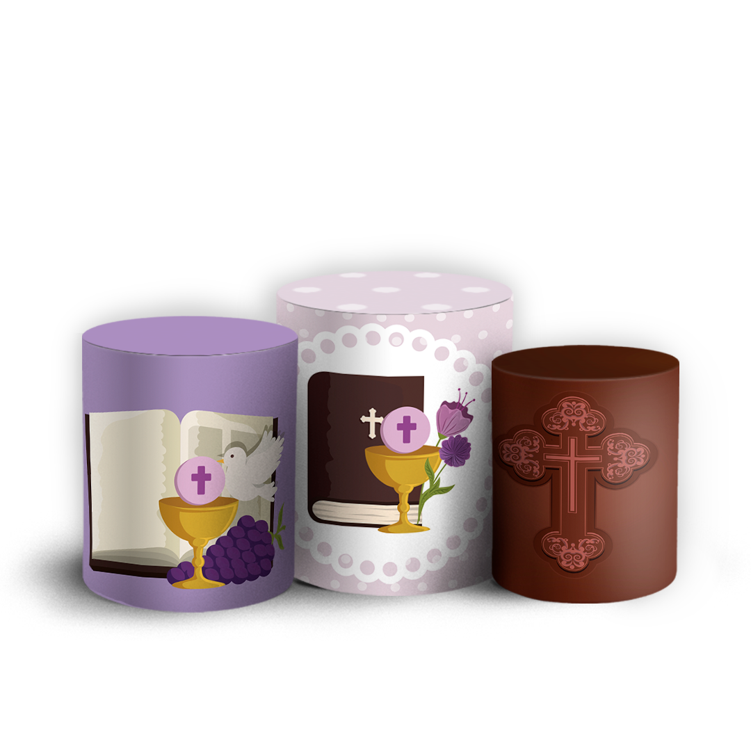 Trio Cilindro - Primeira Comunhao - Sublimado 3D + Elástico