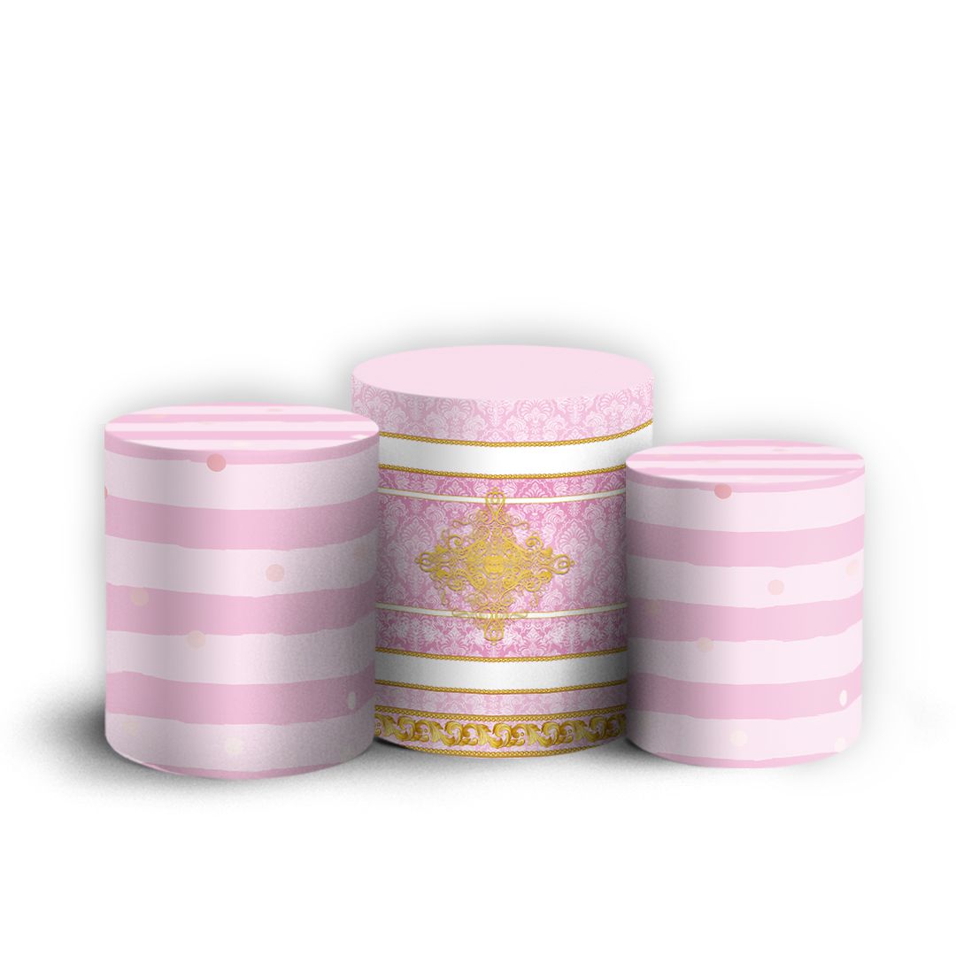 Trio Cilindro - Realeza Rosa - Sublimado 3D + Elástico