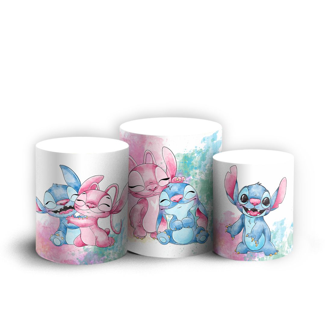 Trio Cilindro - Stitch E Angel - Sublimado 3D + Elástico