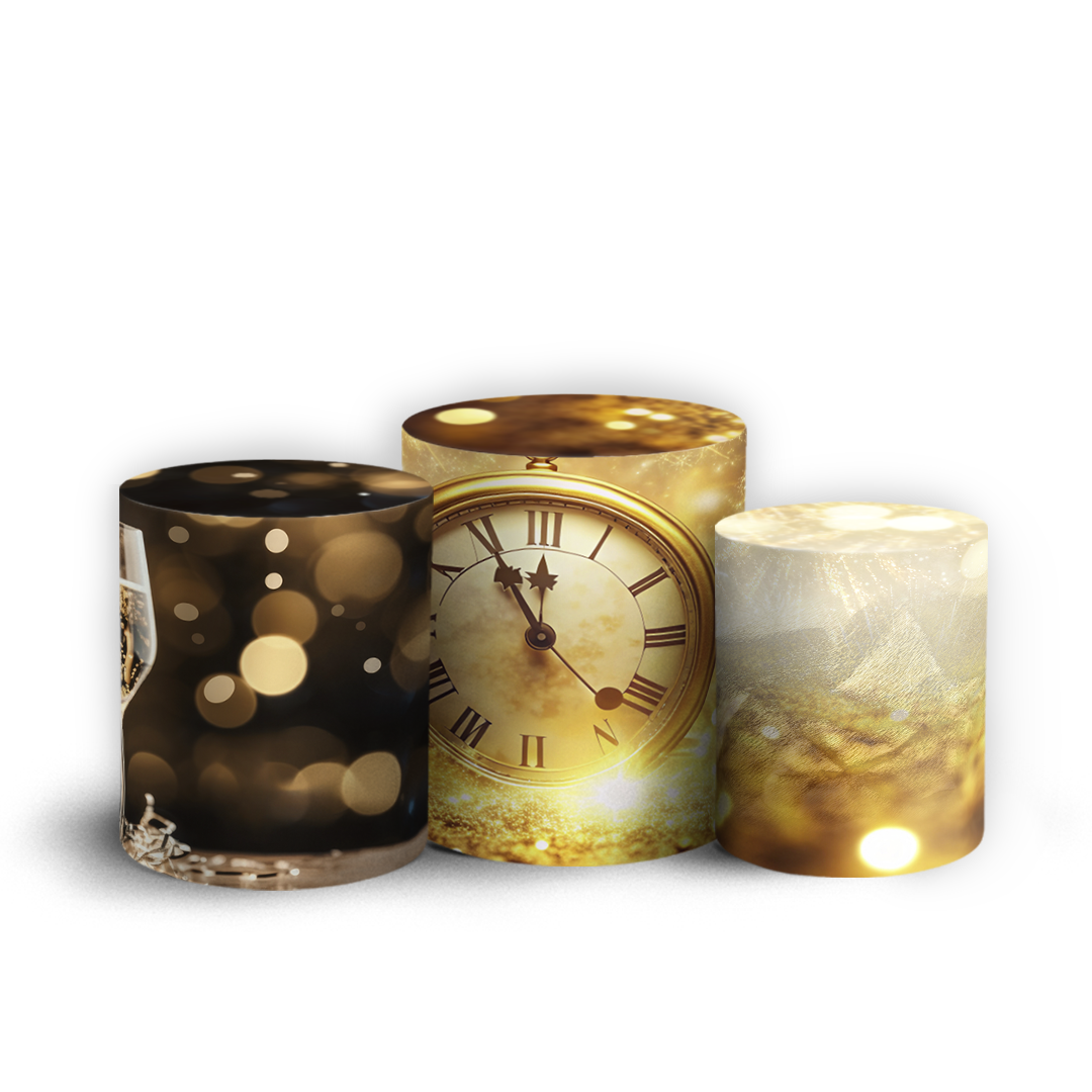 • Cilindro Pequeno (P): 45cm de altura x 38cm de diâmetro (119cm de circunferência)