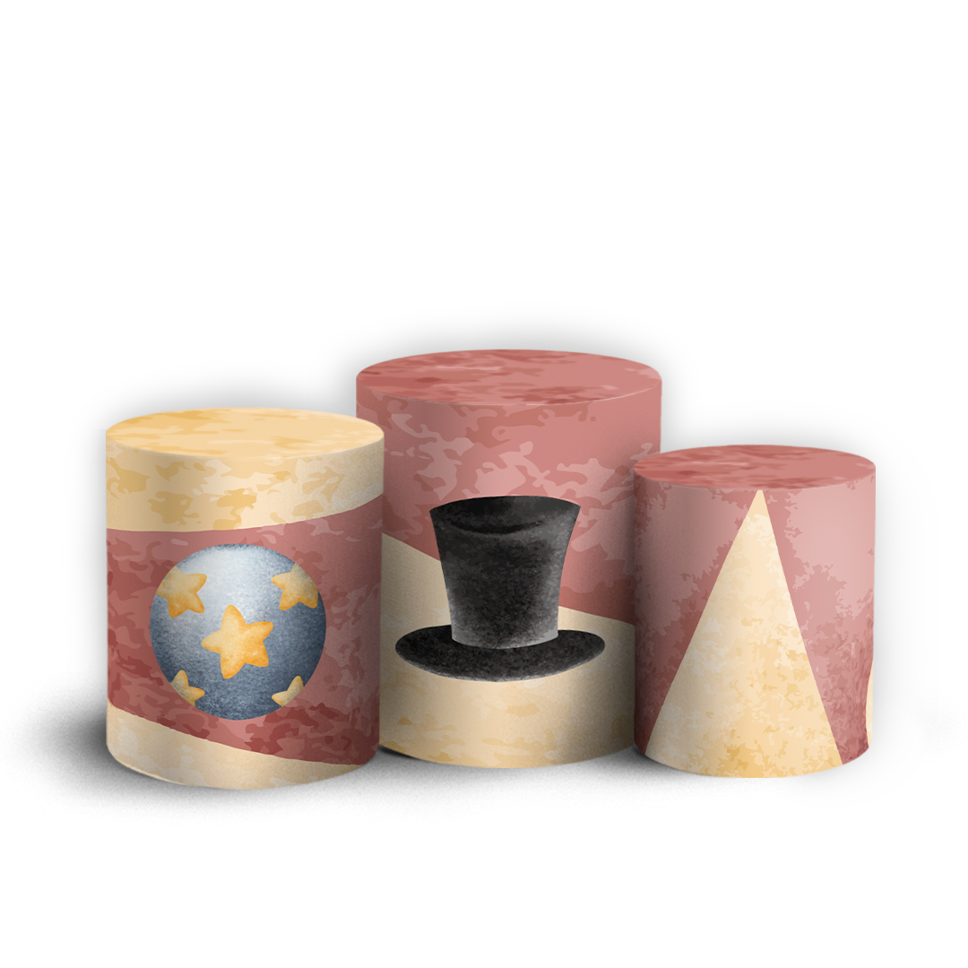• Cilindro Pequeno (P): 45cm de altura x 38cm de diâmetro (119cm de circunferência)