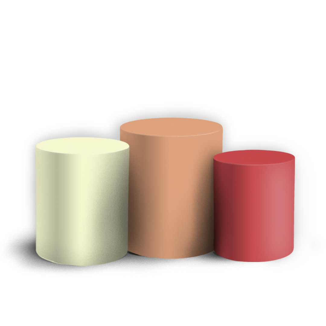 • Cilindro Pequeno (P): 45cm de altura x 38cm de diâmetro (119cm de circunferência)