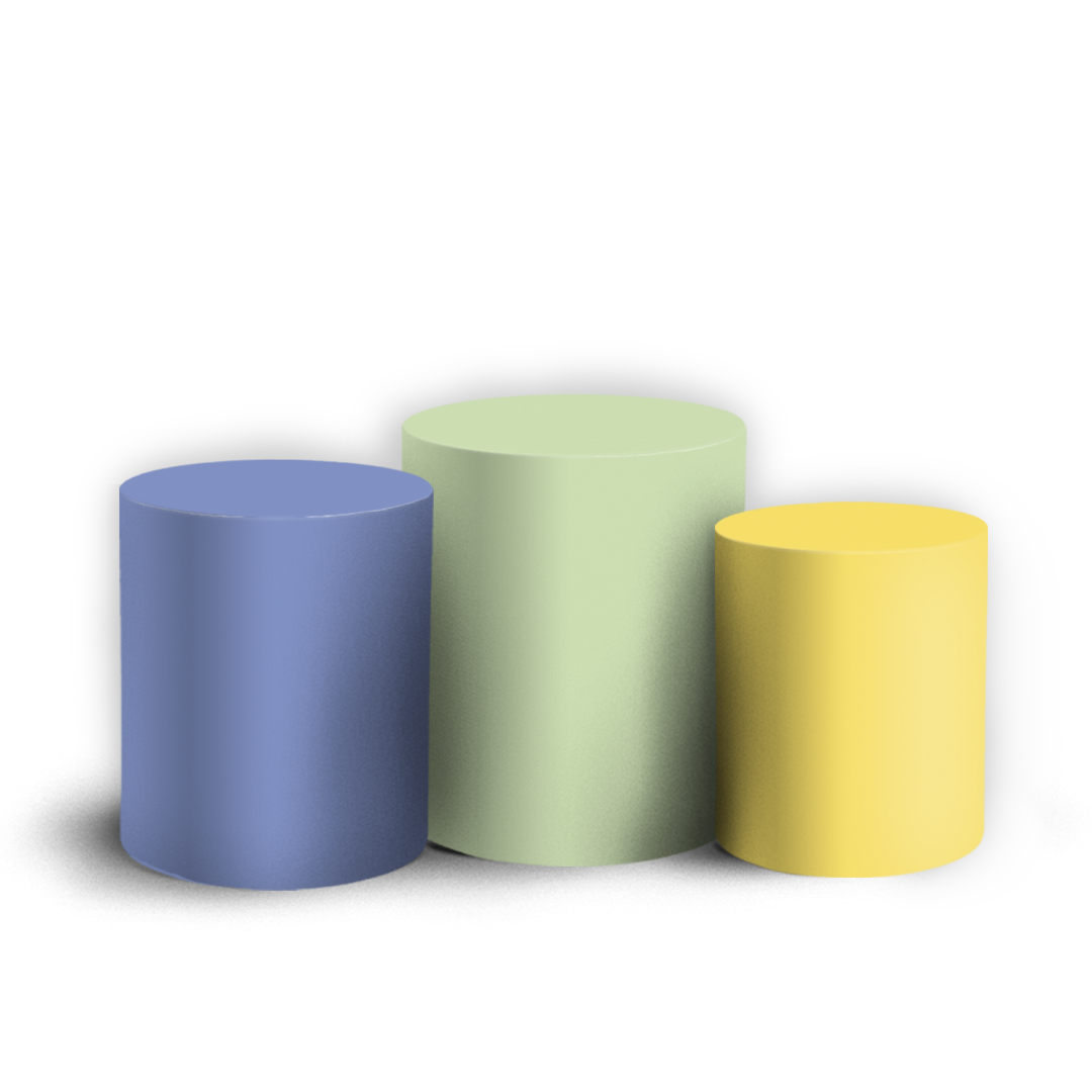 • Cilindro Pequeno (P): 45cm de altura x 38cm de diâmetro (119cm de circunferência)