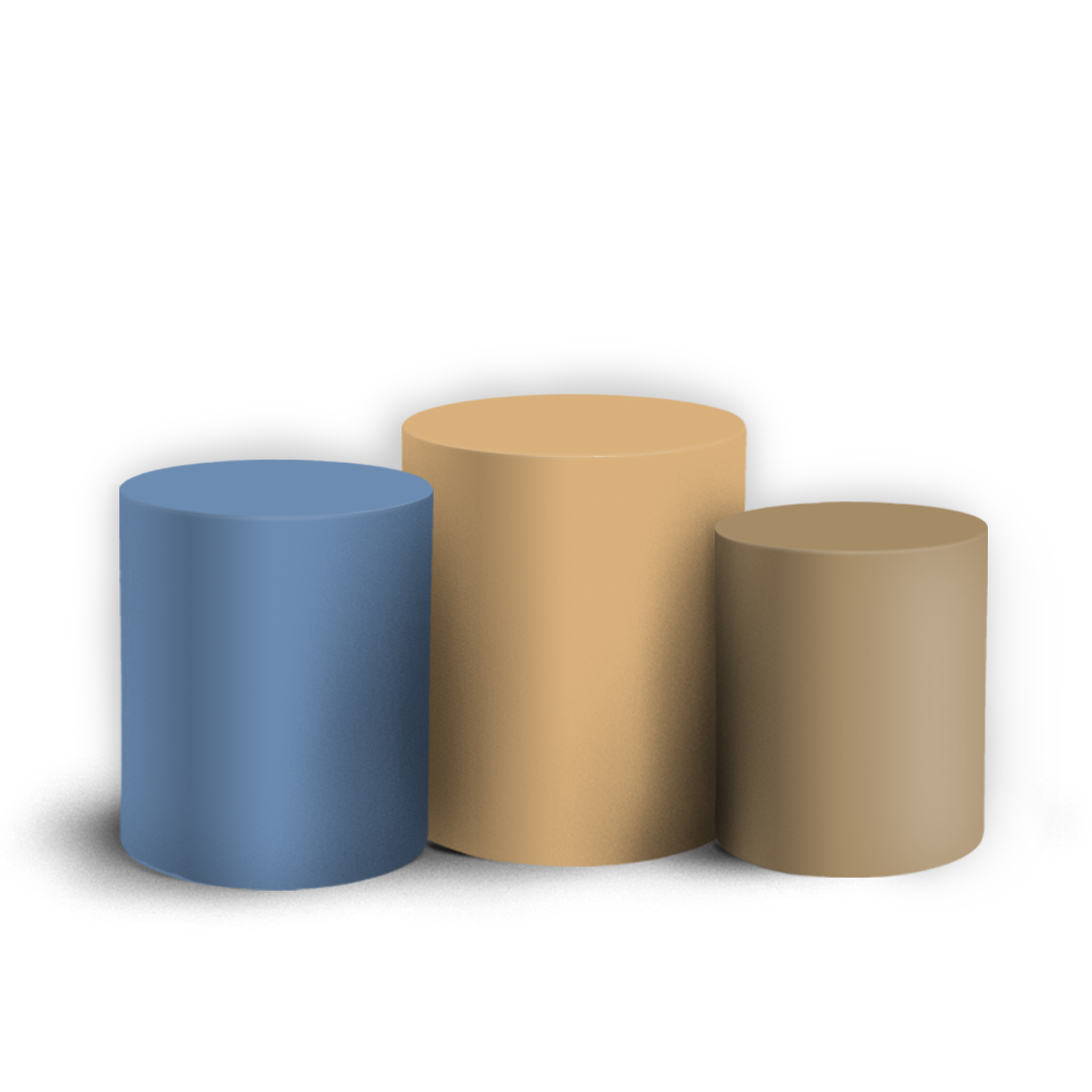 • Cilindro Pequeno (P): 45cm de altura x 38cm de diâmetro (119cm de circunferência)