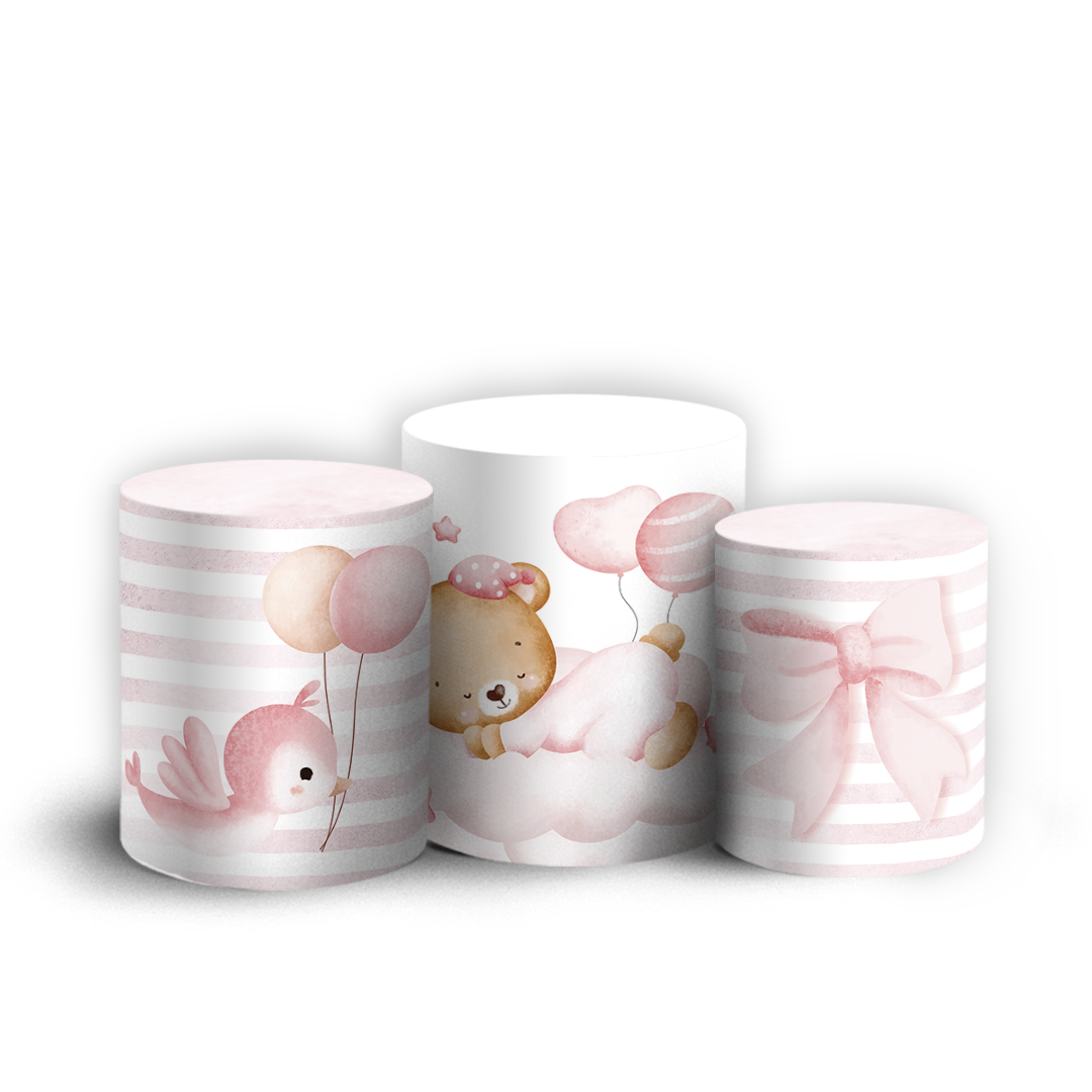 Trio Cilindro Sublimado 3D - Ursinha Rosa