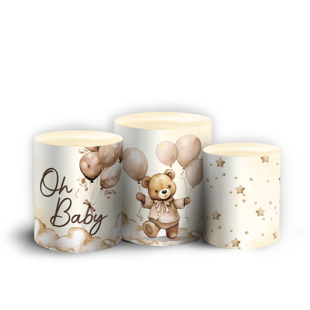 Trio Cilindro Sublimado 3D - Ursinho Bege
