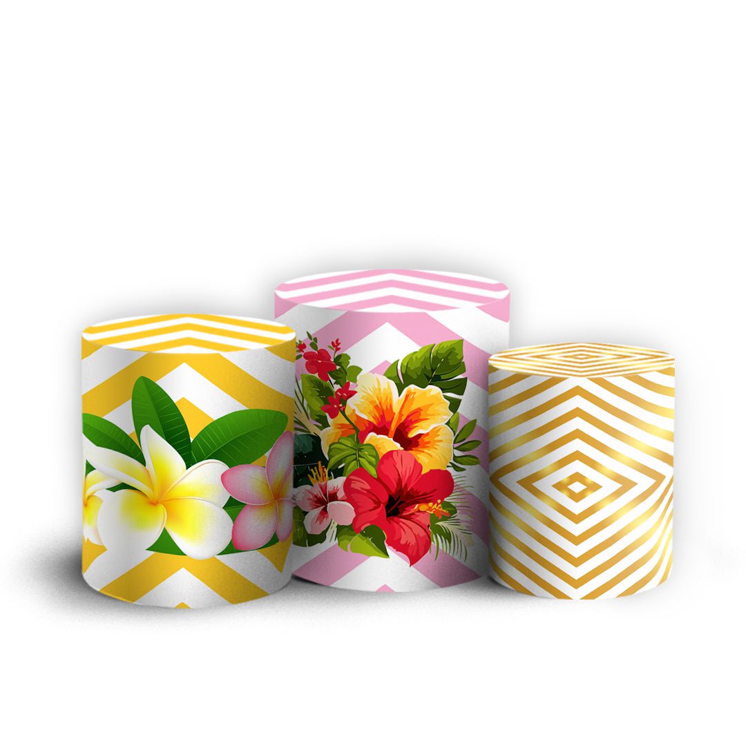 Trio Cilindro - Tropical Rosa - Sublimado 3D + Elástico