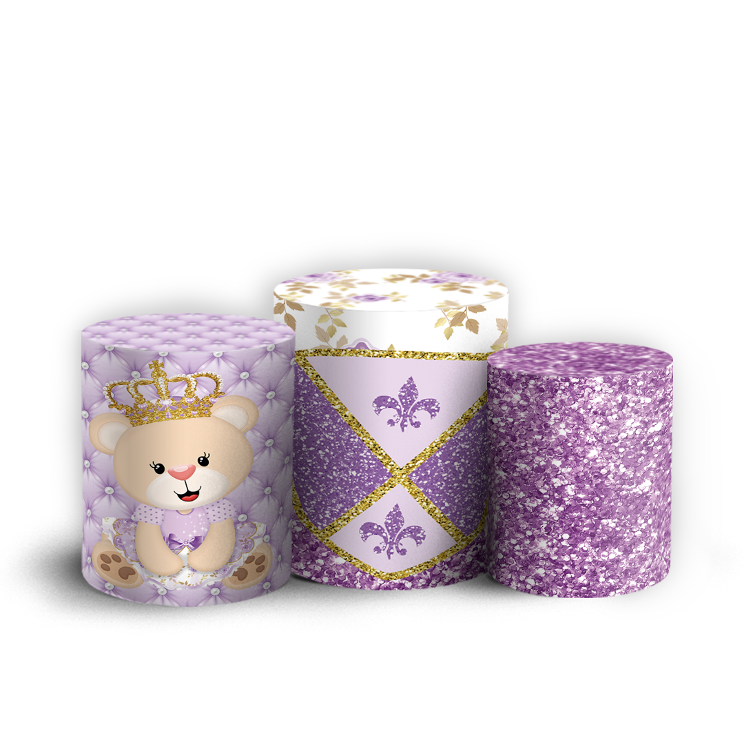 Trio Cilindro - Ursinha Lilas - Sublimado 3D + Elástico