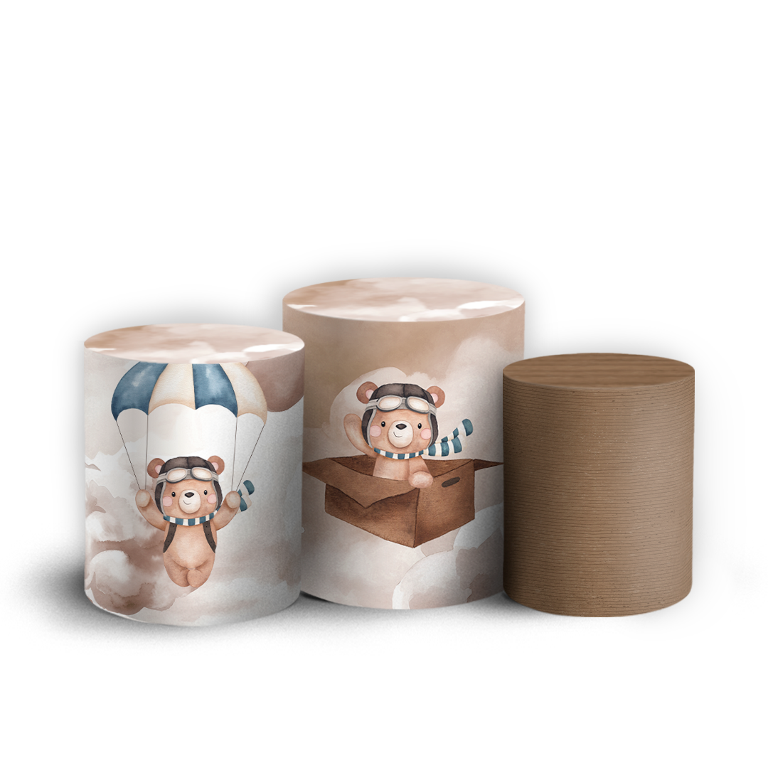 Trio Cilindro - Ursinho Aviador - Sublimado 3D