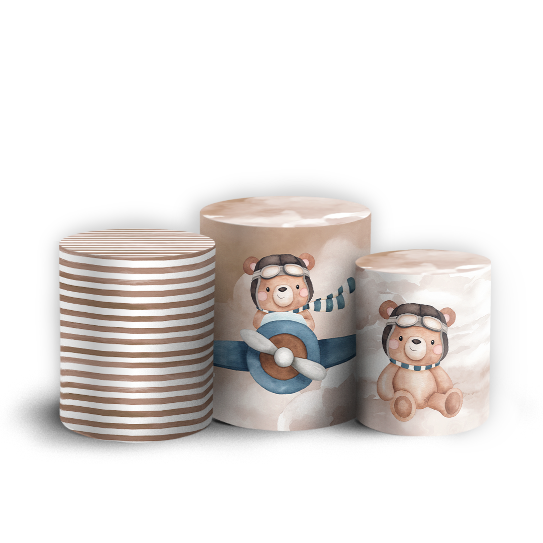 Trio Cilindro - Ursinho Aviador - Sublimado 3D