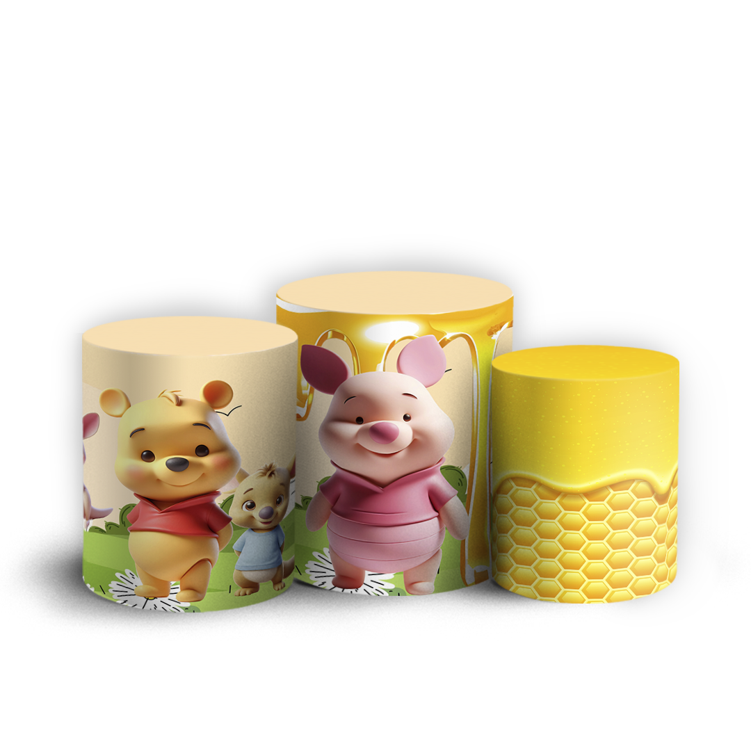 Trio Cilindro - Ursinho Pooh - Sublimado 3D + Elástico